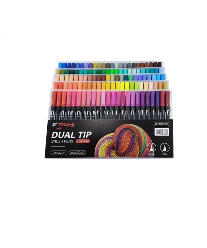 Rotulador con punta pincel para artistas, diseñadores y también aficionados de todas las edades, Por un lado del rotulador encontramos una punta con efecto efecto pincel para lograr efectos de pintura profesional y, por el otro lado, hay una punta fina que permite realizar líneas muy precisas, Las tintas a base de agua están libres de disolventes, disponible en 24 brillantes colores, totalmente mezclables entre sí