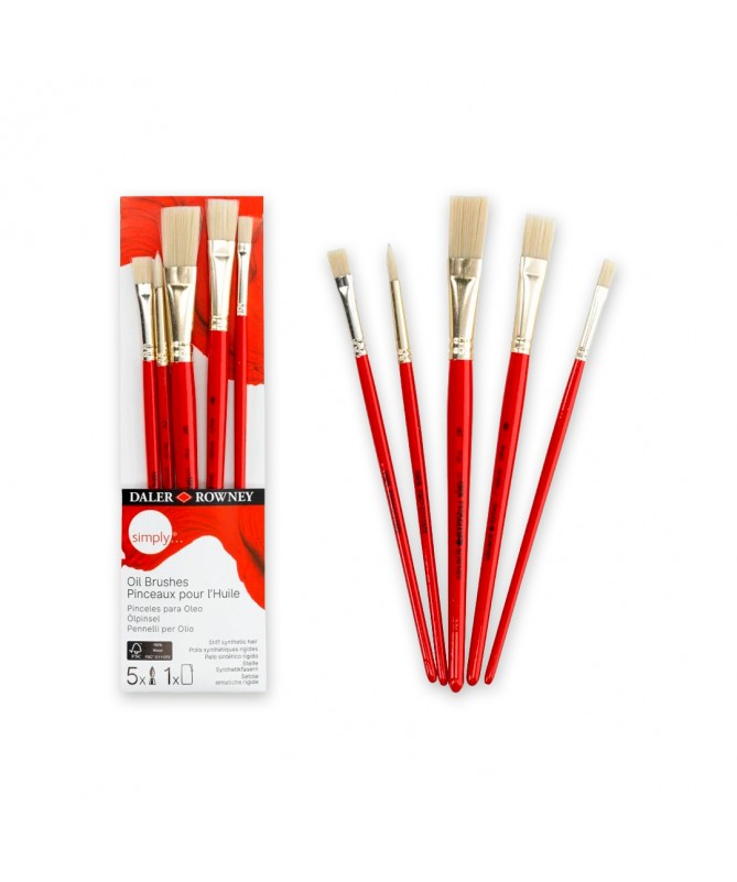 Los Pinceles Sintéticos Simply Oil son una versátil selección de pinceles, especialmente diseñados para usar con pinturas al óleo y otros medios de gran cuerpo. Este juego presenta una gama de formas y tamaños para adaptarse a diversas técnicas, desde pinceladas atrevidas hasta detalles intrincados. Cada pincel está fabricado con filamentos sintéticos de alta calidad que imitan el pelo natural, lo que permite una excelente retención de la pintura y una aplicación suave.