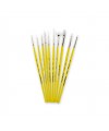 Los pinceles sintéticos de mango corto están diseñados para acrílicos, y combinan durabilidad y precisión. La gama incluye formas versátiles como Angle Shader para sombreados finos, Filbert para zonas curvas y lavados, Script para detalles delicados, Round para uso general, y Flat y Skyflow para trazos amplios y lavados grandes. Cada pincel tiene filamentos sintéticos resistentes y mangos ergonómicos para mayor comodidad y control.